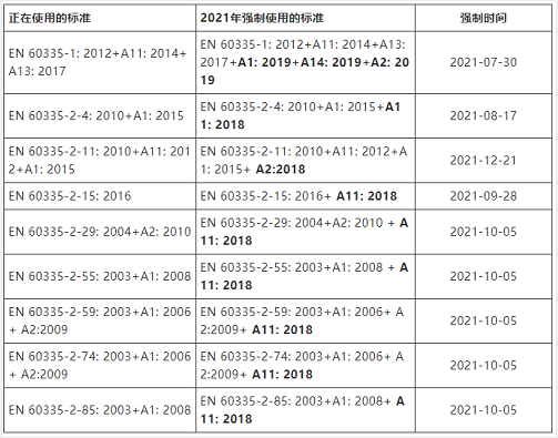 家電安規(guī) EN 60335 系列在 2021 年需強制的標(biāo)準(zhǔn)目錄如下: