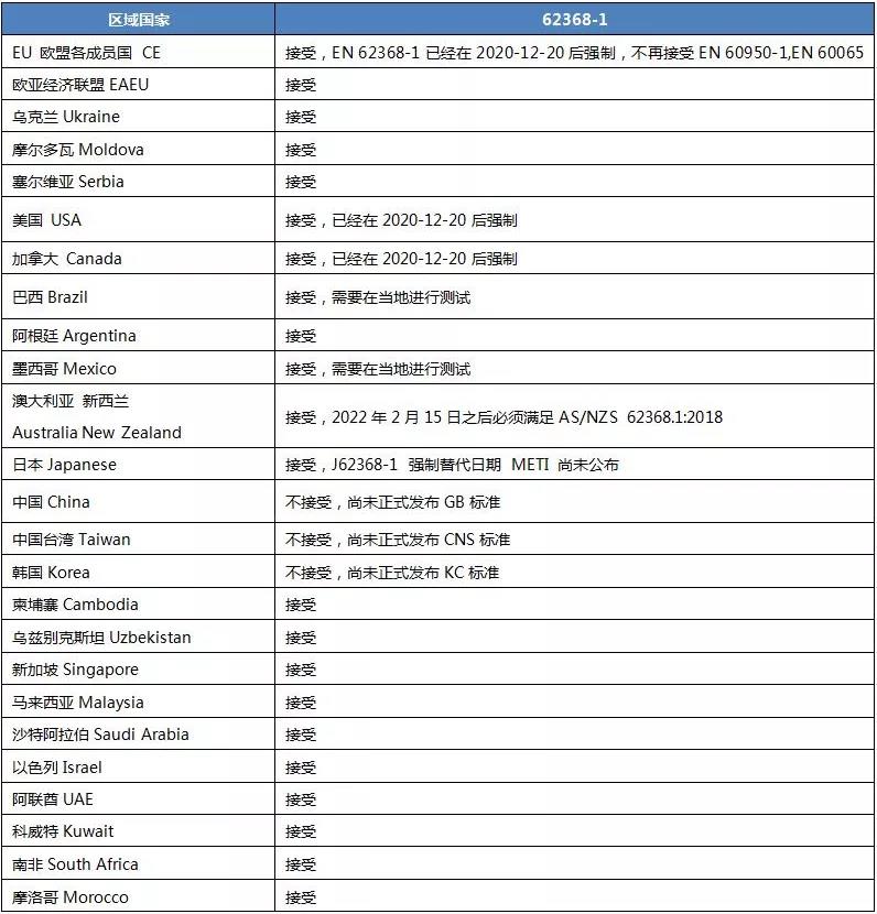 亞馬遜IEC62368檢測標(biāo)準(zhǔn)準(zhǔn)入概況如何?CTB小編現(xiàn)在就來告訴你。IEC 62368-1已經(jīng)發(fā)布和推廣了多年,全球大部分已經(jīng)接受并制定了對應(yīng)的標(biāo)準(zhǔn),少部分也正在進(jìn)行轉(zhuǎn)化中,IEC 62368-1的適用區(qū)域越來越廣,為了便于大家及時獲取全球各國的標(biāo)準(zhǔn)適用信息,避免出現(xiàn)認(rèn)證問題,如下列出了目前全球各國的IEC62368-1準(zhǔn)入概況,供大家參考。